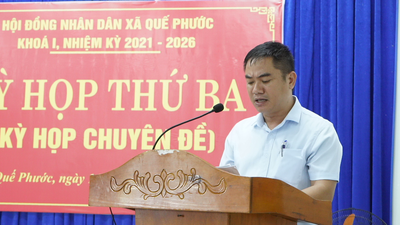 Phát biểu kết luận kỳ họp, đồng chí Bùi Xuân Trung – Bí thư Đảng ủy, Chủ tịch HĐND xã Quế Phước ghi nhận tinh thần trách nhiệm của các ban, ngành, đoàn thể và đại biểu HĐND xã trong quá trình chuẩn bị, thẩm tra và thảo luận các nội dung tại kỳ họp. Đồng chí nhấn mạnh, các nghị quyết được thông qua có ý nghĩa thiết thực, là cơ sở pháp lý quan trọng để UBND xã triển khai hiệu quả các dự án đầu tư công và chương trình xây dựng nông thôn mới, góp phần thúc đẩy phát triển kinh tế - xã hội, nâng cao đời sống nhân dân.