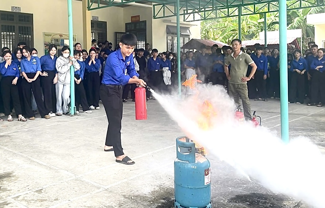 Không chỉ trang bị kiến thức, lực lượng công an còn tổ chức phần thực hành về kỹ năng PCCC. Các đoàn viên, thanh niên được hướng dẫn cụ thể cách sử dụng bình chữa cháy, thao tác dập lửa an toàn và phương pháp thoát hiểm khi xảy ra cháy nổ tại gia đình, nơi làm việc hay khu dân cư. Những trải nghiệm trực tiếp tạo sự hứng thú, dễ tiếp thu và để lại ấn tượng sâu sắc. Qua đó, các bạn trẻ không chỉ có thêm kiến thức mà còn rèn luyện kỹ năng sống, nâng cao khả năng ứng phó sự cố, góp phần bảo vệ an toàn tính mạng và tài sản cho bản thân, gia đình và cộng đồng.