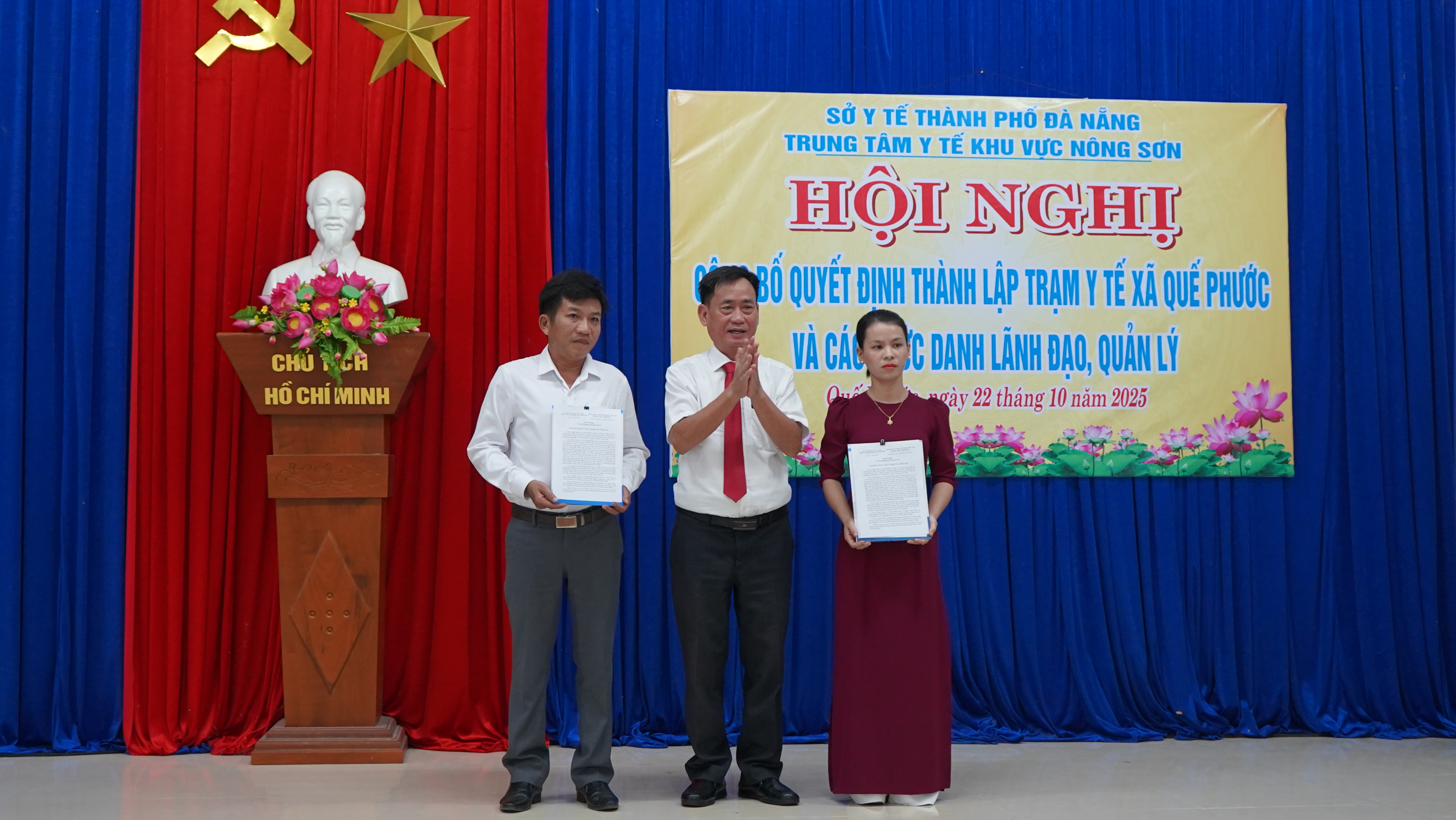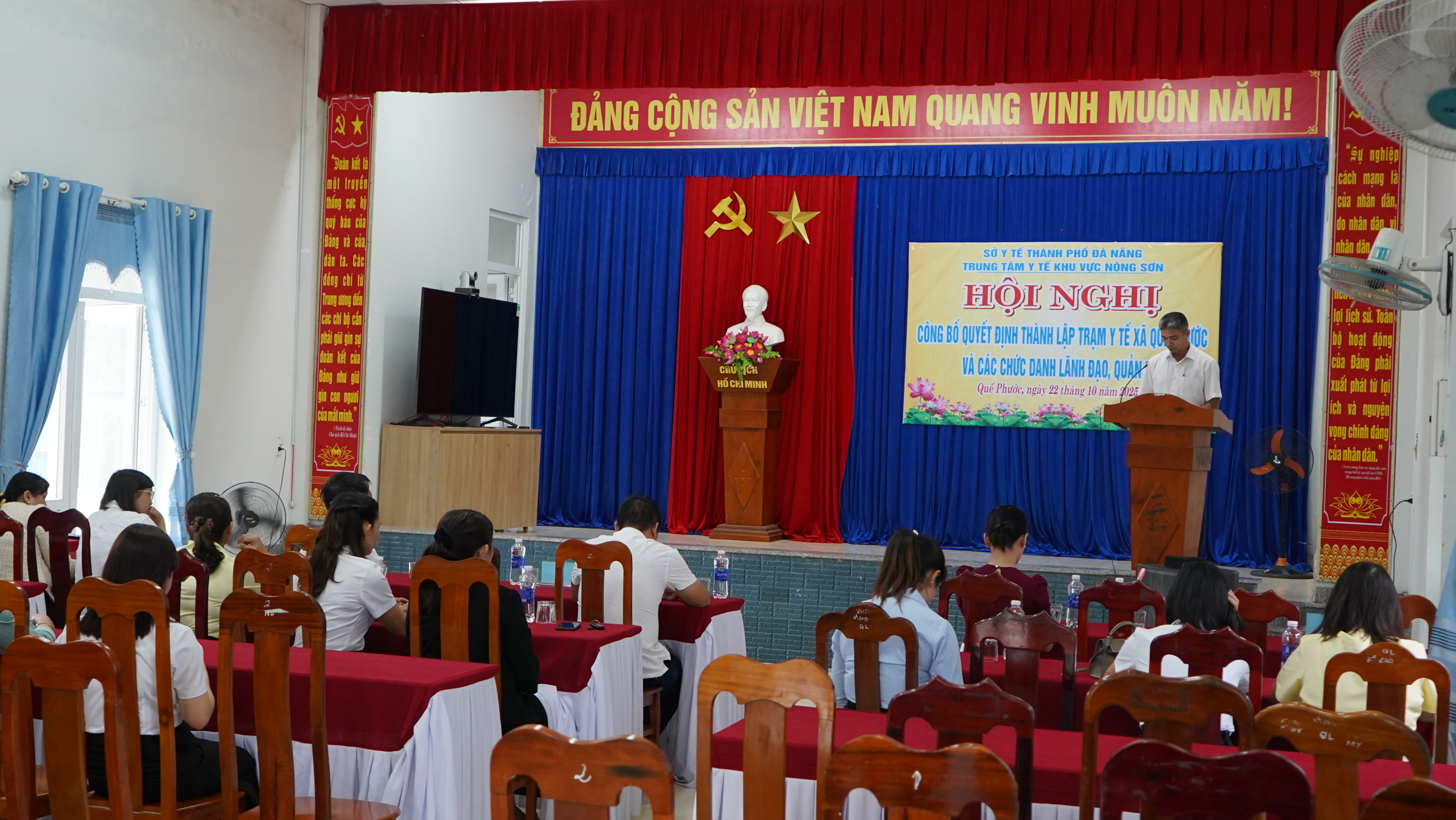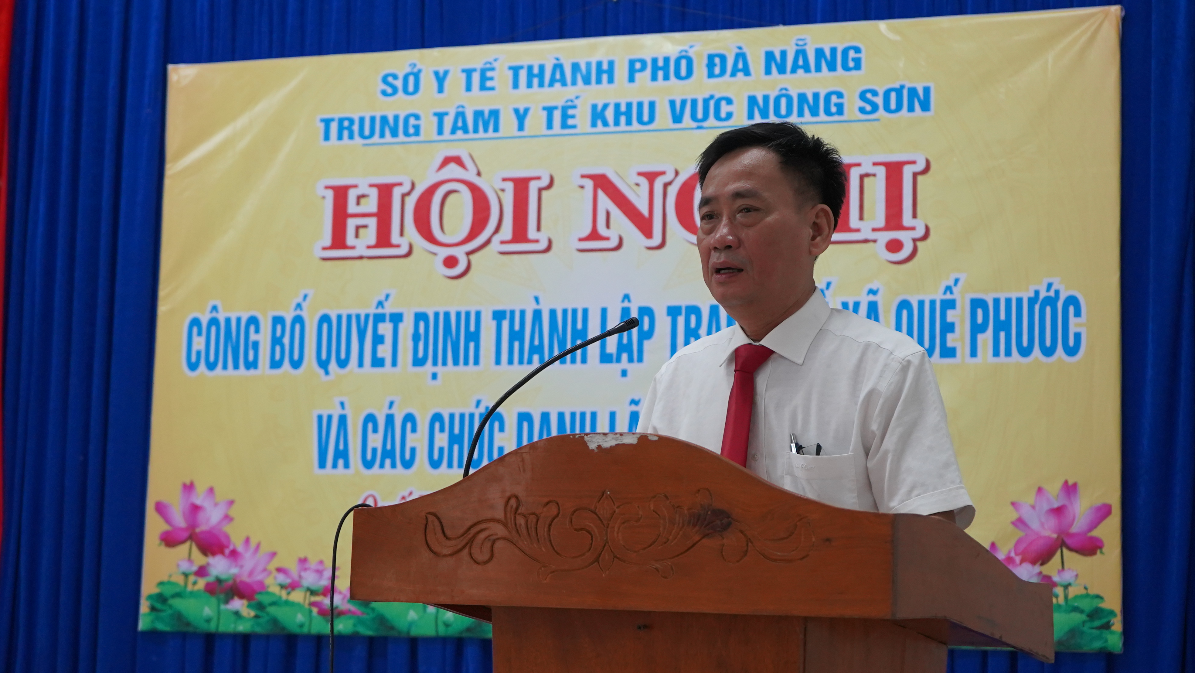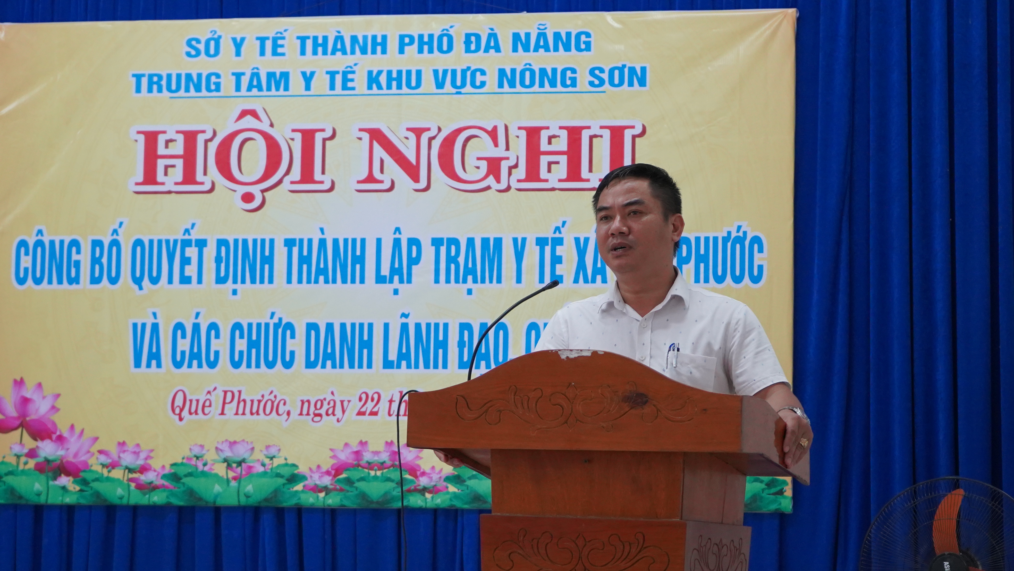 Tại buổi lễ, đại diện lãnh đạo Trung tâm Y tế khu vực Nông Sơn đã công bố Quyết định số 54 về việc thành lập Trạm Y tế xã Quế Phước trực thuộc Trung tâm Y tế khu vực Nông Sơn trên cơ sở sáp nhập Trạm Y tế 3 xã: Quế Lâm, Ninh Phước và Phước Ninh.
