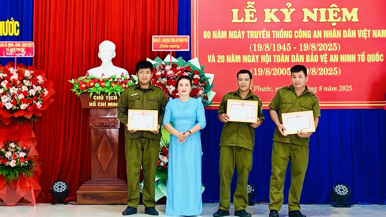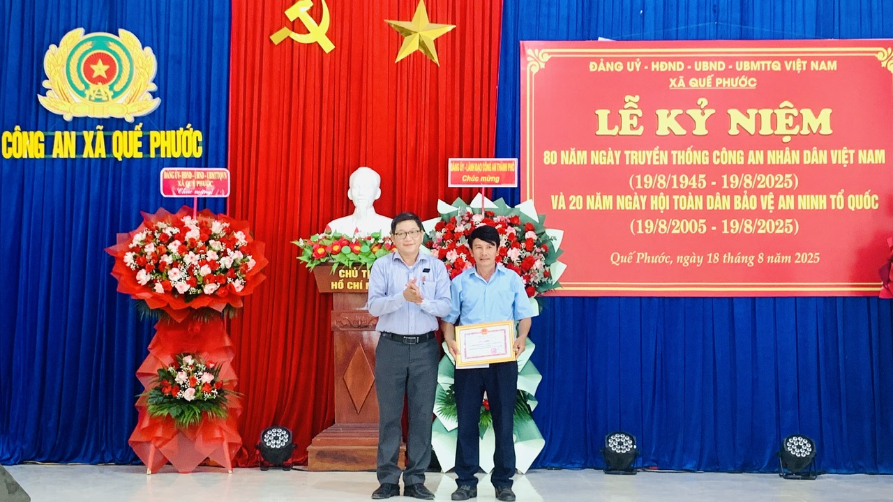Phát biểu tại buổi lễ, Chủ tịch UBND xã Quế Phước Tào Thị Tố Điểm ghi nhận, biểu dương những kết quả lực lượng công an đạt được trong thời gian qua; đồng thời đề nghị cán bộ, chiến sĩ tiếp tục phát huy truyền thống, giữ vững ANTT, xây dựng phong trào toàn dân bảo vệ ANTQ ngày càng vững mạnh. Bên cạnh đó, cần tăng cường đoàn kết, thống nhất, xây dựng môi trường công tác dân chủ, nhân văn; thật sự là lực lượng nòng cốt trong tham mưu, chỉ đạo phong trào toàn dân bảo vệ ANTQ; nâng cao tinh thần trách nhiệm, kỷ cương, kỷ luật, gần dân, trọng dân, vì nhân dân phục vụ; chủ động ứng dụng công nghệ, thúc đẩy chuyển đổi số trong công tác chuyên môn.