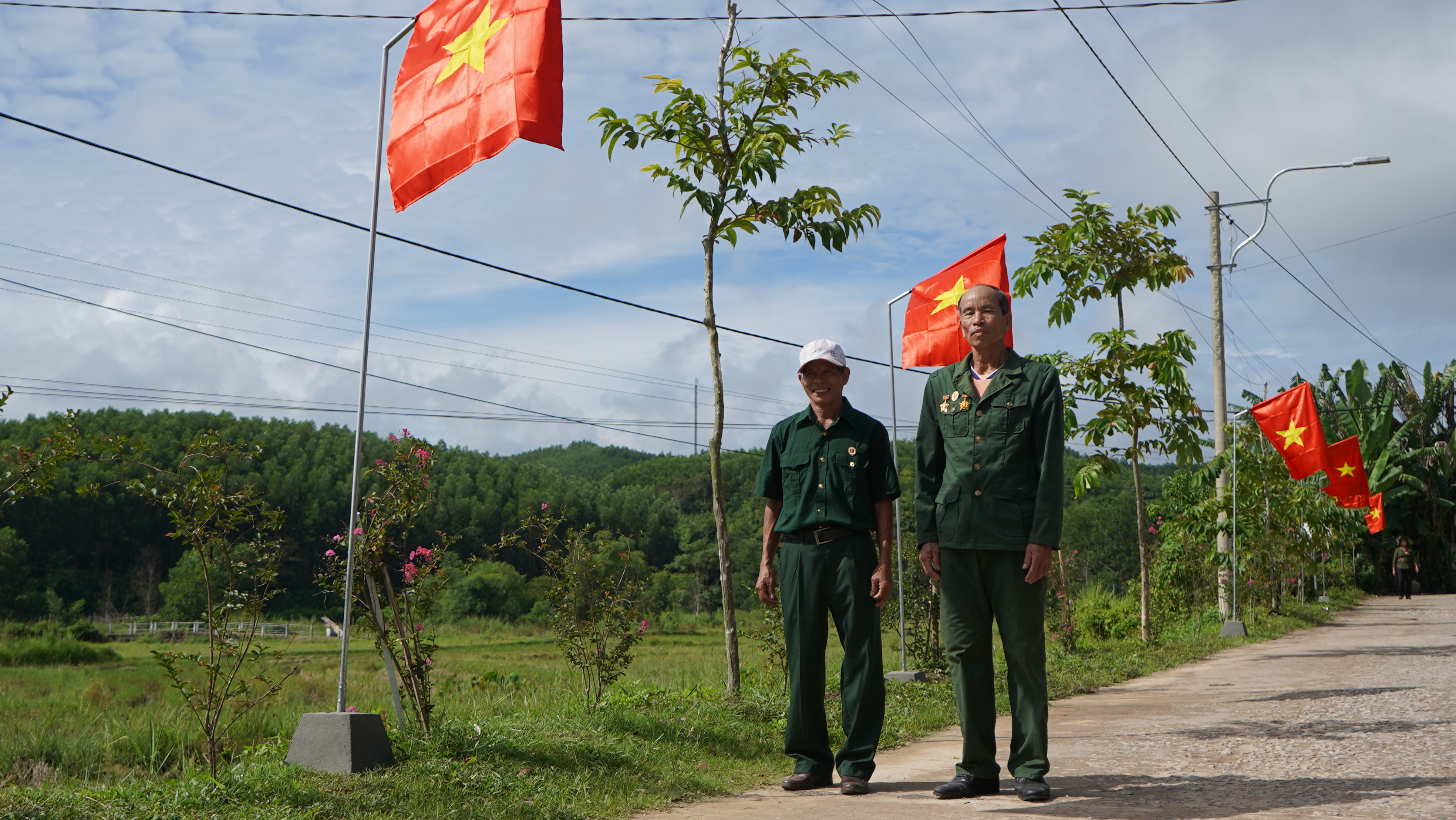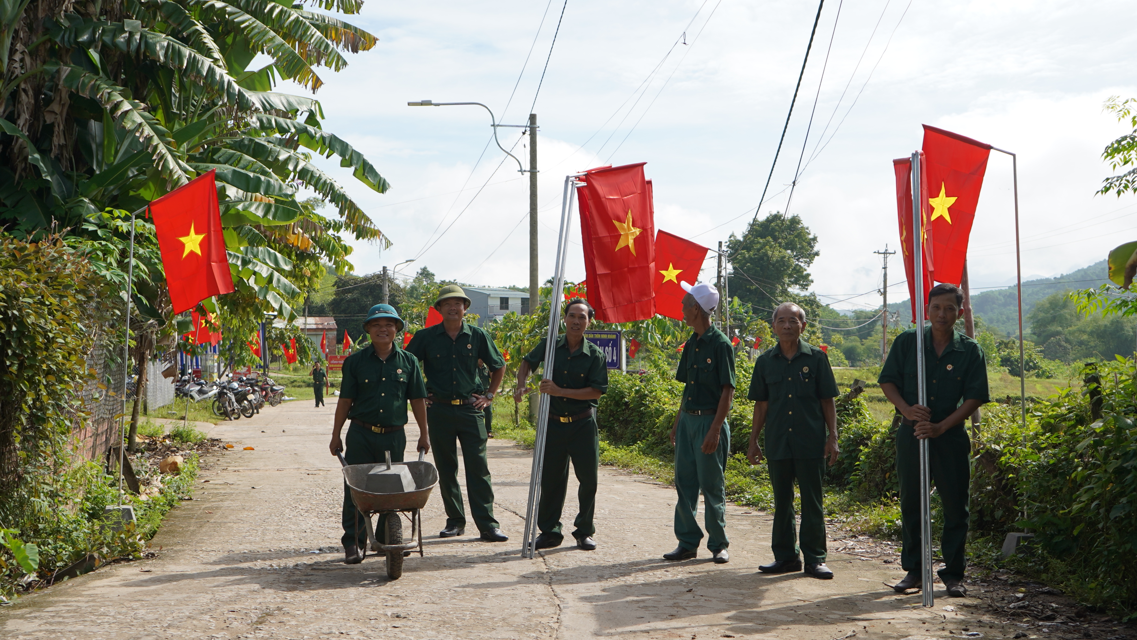 Ngay từ sáng sớm, hơn 50 hội viên CCB đã tập trung tiến hành dọn vệ sinh môi trường, phát quang bụi rậm, lắp đặt đế cờ, cột treo cờ và treo 120 lá cờ Tổ quốc trên tuyến đường chính của thôn. Những lá cờ đỏ thắm tung bay trong nắng thu không chỉ làm rực rỡ không gian làng quê mà còn khơi dậy niềm tự hào dân tộc, tinh thần yêu nước trong cán bộ, hội viên và nhân dân địa phương.