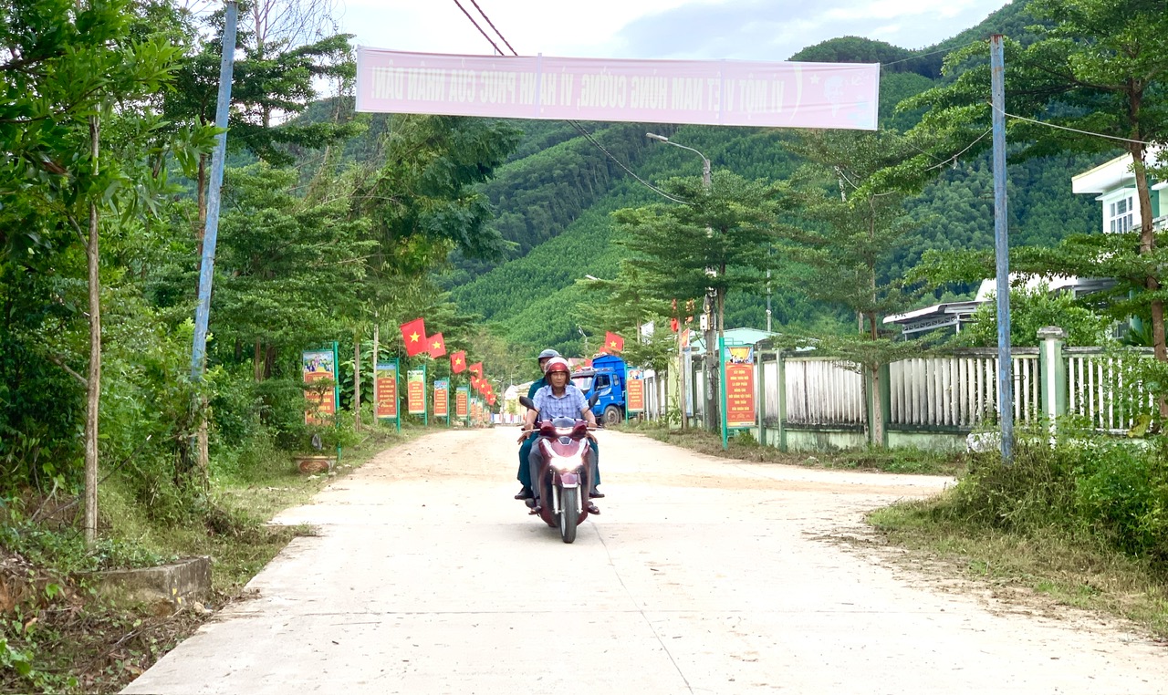 Tuyến đường từ quốc lộ 14H đến Trạm Y tế xã Quế Lâm (cũ) khang trang, sạch đẹp.