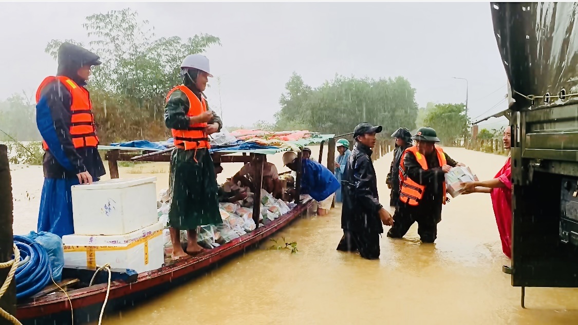 Trưa 2.11, khi trời vẫn còn lất phất mưa, đoàn thiện nguyện Hiếu Nhạc (TP. Tam Kỳ) đã có mặt tại xã Quế Phước để trao quà hỗ trợ người dân vùng lũ. Hơn 2 tấn hàng hóa gồm gạo, nước uống, mì tôm, sách vở, quần áo, thuốc men, áo phao và nhiều nhu yếu phẩm khác được chuẩn bị chu đáo, chia thành từng gói nhỏ để trung chuyển vào các khu vực bị chia cắt. Để đưa hàng đến tay bà con, các thành viên trong đoàn phải sử dụng ghe nhỏ, chở từng chuyến sang bờ bên kia. “Chúng tôi phải dùng ghe để đưa hàng sang bên kia cầu, mỗi chuyến chỉ chở được vài chục suất quà. Dù vất vả nhưng ai cũng cố gắng, bởi biết rằng bà con đang rất cần. Cảm động nhất là khi thấy người dân đứng chờ bên bờ, sẵn sàng chuẩn bị ghe, xe để giúp chúng tôi trung chuyển quà đến những khu vực bị cô lập”, chị Đinh Thị Tố Loan, Trưởng đoàn thiện nguyện chia sẻ. Không chỉ đoàn Hiếu Nhạc, trong những ngày đầu tháng 11, hàng chục đoàn thiện nguyện khác cũng đã về với Quế Phước, sẻ chia khó khăn cùng người dân vùng lũ. Tuy nhiên, do tuyến quốc lộ 14H vẫn còn nhiều đoạn sạt lở, việc vận chuyển hàng hóa gặp không ít trở ngại. Một phần quà được trao trực tiếp cho bà con thôn Xuân Hòa, phần còn lại phải trung chuyển bằng ghe qua khu vực cầu Khe Rinh, nơi nước vẫn còn chảy xiết, để tiếp cận người dân các thôn Tứ Nhũ, Tứ Trung, Phước Hội, Dùi Chiêng… Tại thôn Bình Yên, nhiều đoàn thiện nguyện cũng đã đến hỗ trợ người dân dọn dẹp nhà cửa, vệ sinh đường làng, trường học, trạm y tế. Xen giữa những ngày mưa, hình ảnh những đoàn người khoác áo mưa, lội bùn chuyển quà hay cùng dân xúc bùn, sửa nhà trở nên quen thuộc và ấm áp tình người. Cùng với lực lượng thiện nguyện, 50 cán bộ, chiến sĩ Lữ đoàn Tăng thiết giáp 574 đã về giúp dân khắc phục hậu quả sau lũ. Họ chia thành các tổ nhỏ, đến từng thôn dọn bùn, sửa lại nhà cửa, trường học, giúp người dân dựng lại hàng rào, khơi thông cống rãnh.