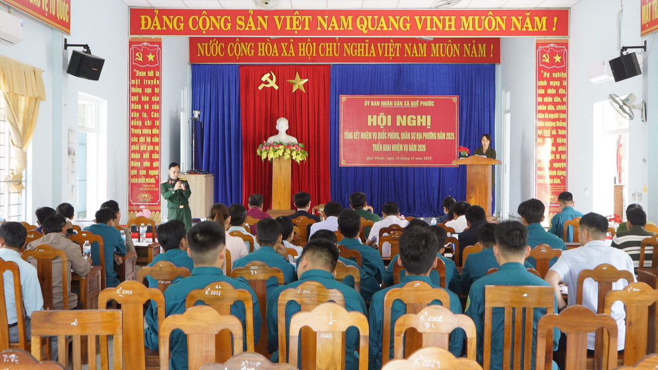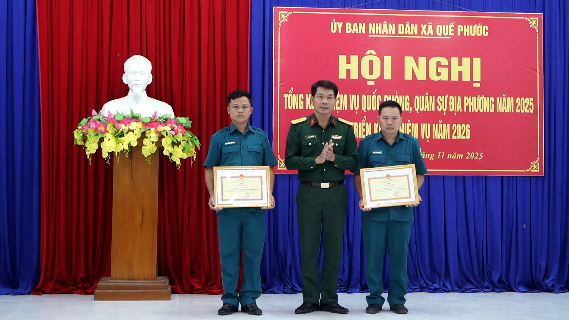 Năm 2025, dù còn nhiều khó khăn, nhưng Ban CHQS xã Quế Phước đã hoàn thành toàn diện các nhiệm vụ QP-QS; nhiều chỉ tiêu đạt và vượt kế hoạch. Công tác trực sẵn sàng chiến đấu duy trì nghiêm; chỉ tiêu giao quân và huấn luyện đều đạt 100%. Toàn xã có 289 dân quân, gồm 3 trung đội cơ động và 13 tiểu đội tại chỗ. Công tác Đảng, công tác chính trị được triển khai đồng bộ; kỷ luật, kỷ cương được giữ vững. Công tác hậu cần – kỹ thuật bảo đảm đầy đủ, cảnh quan đơn vị tiếp tục được củng cố.